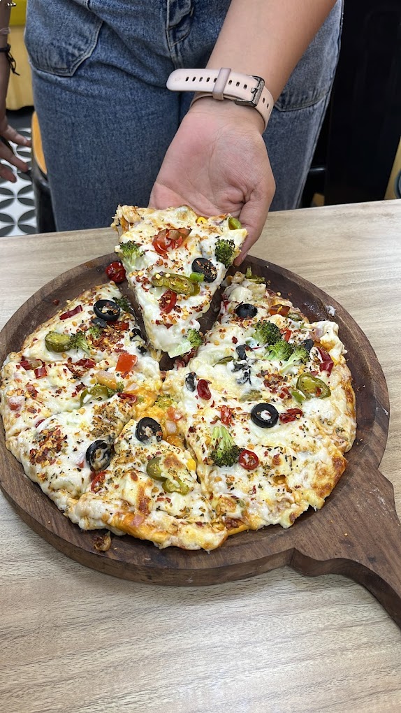 As you step inside, you’ll be greeted by an inviting atmosphere that’s both contemporary and laid-back. The interiors are decorated with a modern yet cozy touch, making it a great backdrop for your Instagram stories. Whether you're looking to unwind after a long day or celebrate a special occasion, The Pizzeria Cafe creates an environment that feels just right.
